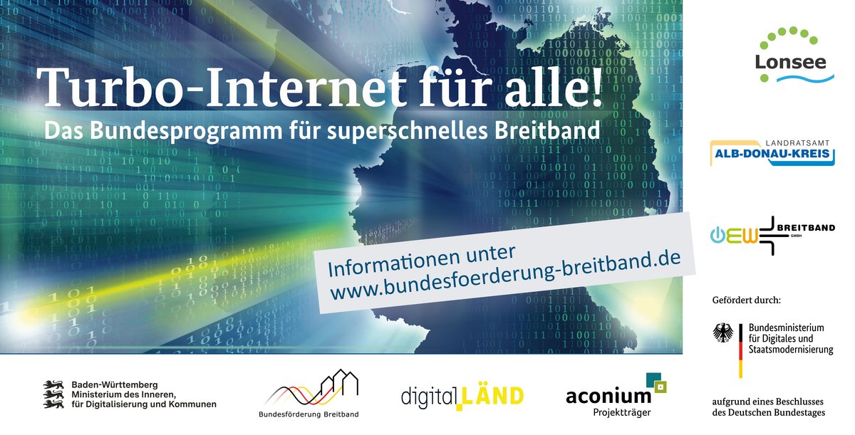 Wir bedanken uns beim Bundesministerium für Digitales und Staatsmodernisierung für die Unterstützung des kommunalen Breitbandausbaus und die in Aussicht gestellten Fördermittel. Ebenfalls bedanken wir uns für die Mitfinanzierung vom Land Baden-Württemberg vor allem beim zuständigen Ministerium für Inneres, Digitalisierung und Kommunen.